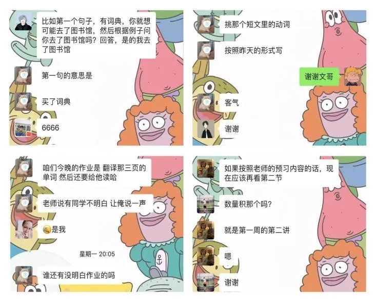 网课虽然没有给我们提供教室,但是这丝毫不影响同学们在“微信自习室”讨论问题。